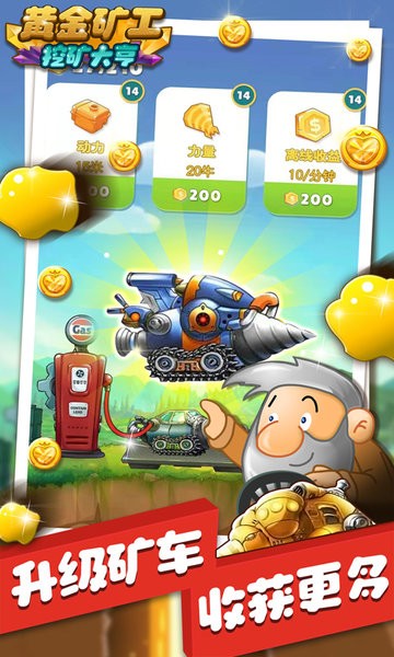 -挖掘宝藏兑换金币,升级或更换你的矿车,让你能挖掘更多宝藏;