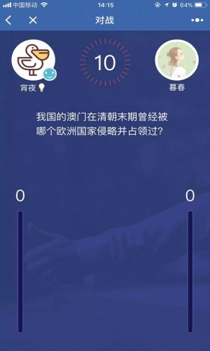 这游戏最有趣的一点是可以跟微信好友对战,可以找个朋友俩人PK,五道题很快就答完了,一局比赛打完可能互相不服,可以三局两胜或者五局三胜这样。排位赛是为了挑战高度,朋友对战则更有乐趣,就像和小伙伴踢球、下棋、打dota一样。但如果你喜欢和朋友一起玩,就不要先打排位赛,前面说了,这游戏题库有限,如果排位赛打得多了,再跟朋友玩,一看题全是见过记住的,就兴趣索然,即使赢了都没意思了。