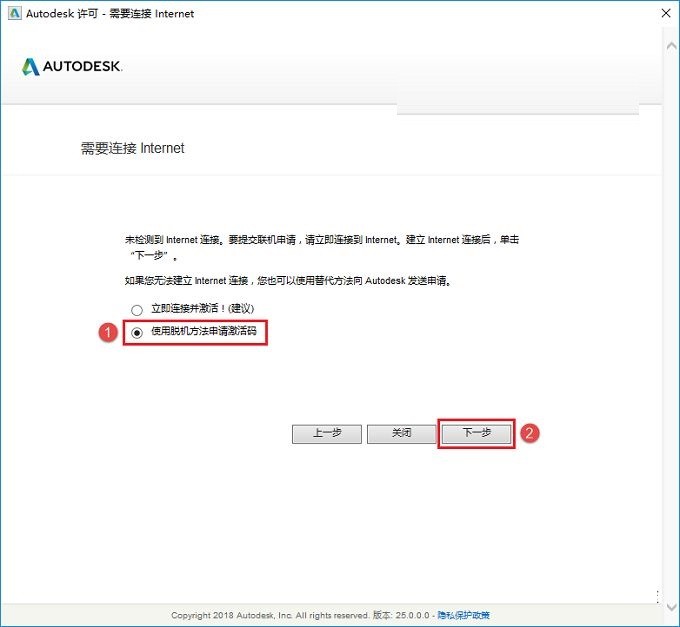15、勾选“使用脱机的方法申请激活码”,然后点击【下一步】