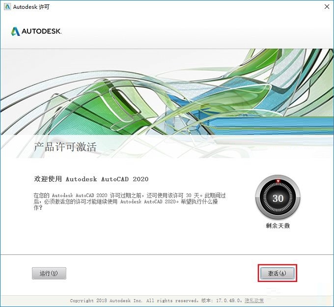 26、重新打开AutoCAD 2020软件,不再提示需要激活,界面如下: