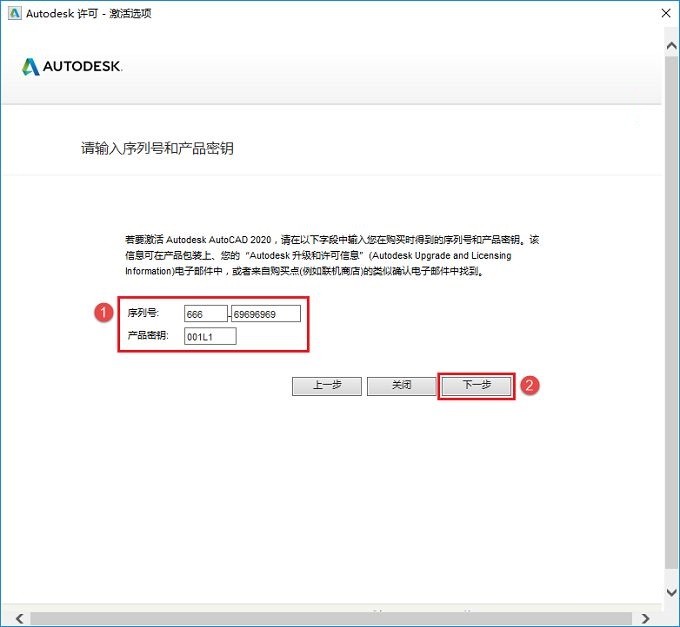18、输入序列号:666-69696969,产品密钥:001L1,然后点击【下一步】