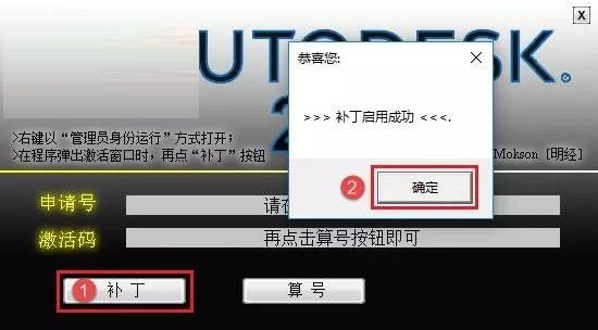 22、弹出注册机界面,点击【补丁】,弹出“补丁启用成功”提示框,点击【确定】