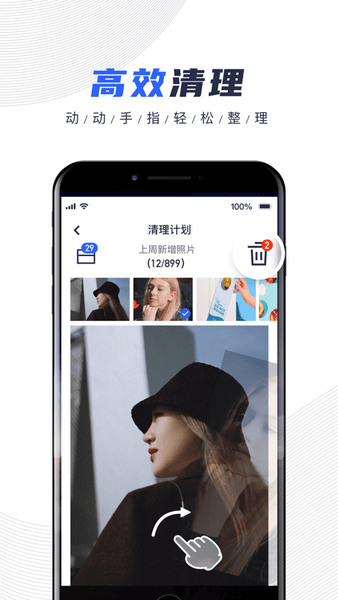 高效清理:滑动清理模式能更高效、更准确的删除/保留您的照片,达到整理、清理的作用;