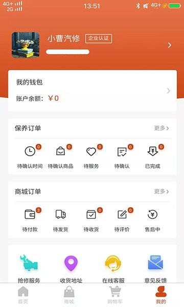 5、卡卡维保商户app可以管理自己的汽车维保订单,查看订单记录的服务内容。