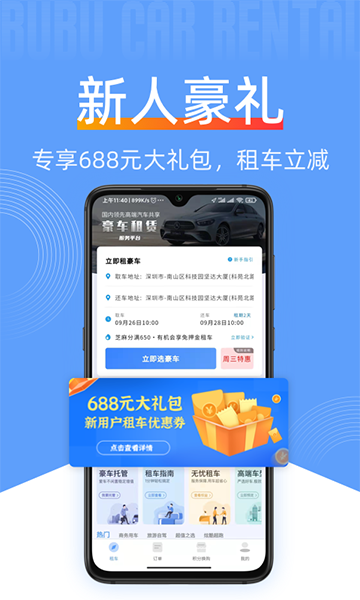 新手福利,新用户即享688元租车大礼包!