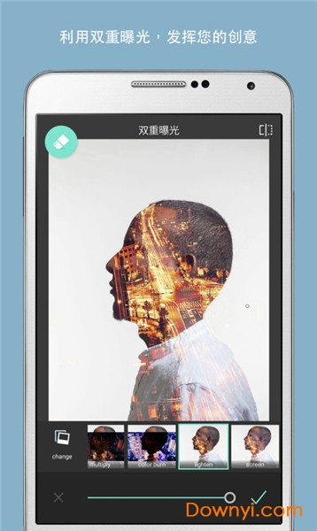 使用“双重曝光”逐层放置多张照片并将其混合在一起,以获得独特的外观。