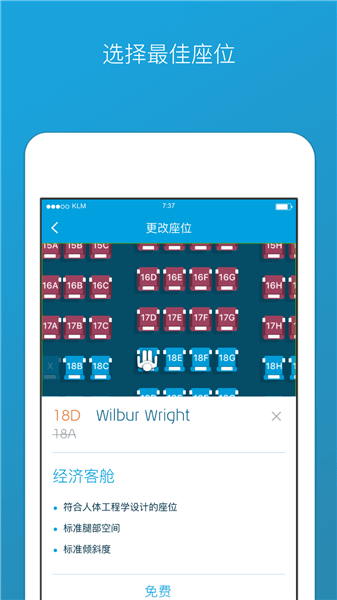 个性化选座服务:根据您的需求选择座位,包括经济舱、商务舱等不同舱位,以及靠窗、靠过道等不同位置,确保您拥有舒适的飞行体验。
