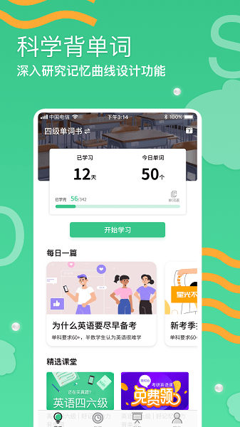 通过科学的方法进行记单词,让海量单词可以更好的在短时间内记忆。