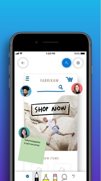 微软推出的非常不错的创意记录app,适用于会议或者设计中, 现在你能把你的电子设备变换成为白板,自由写出自己的创意,讨论,完成计划,相信不少的小伙伴都会非常喜欢!