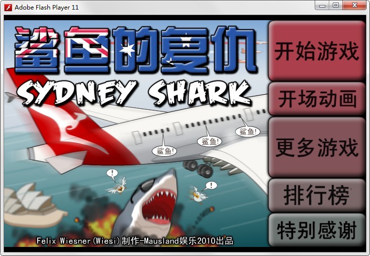 解压文件之后直接双击sydney-shark.swf即可开启游戏