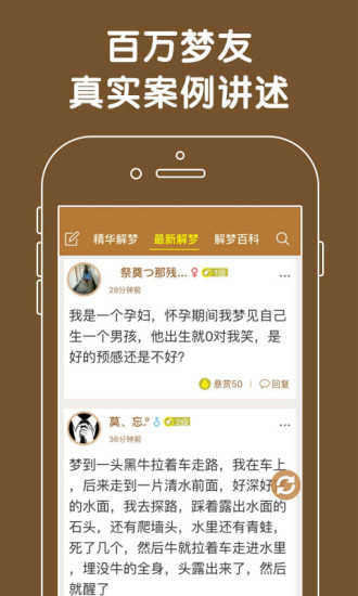 2、交流区,小伙伴们在这里可以“求解梦”也可以“解梦”,这里是普通梦友解梦的乐园也是各路解梦大神们集中发功的地方。