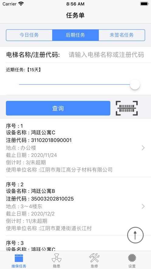 精确统计维保信息,超期完成、故障查询、年检预警,信息电脑后台一键汇总,监督无死角,沟通有依据。