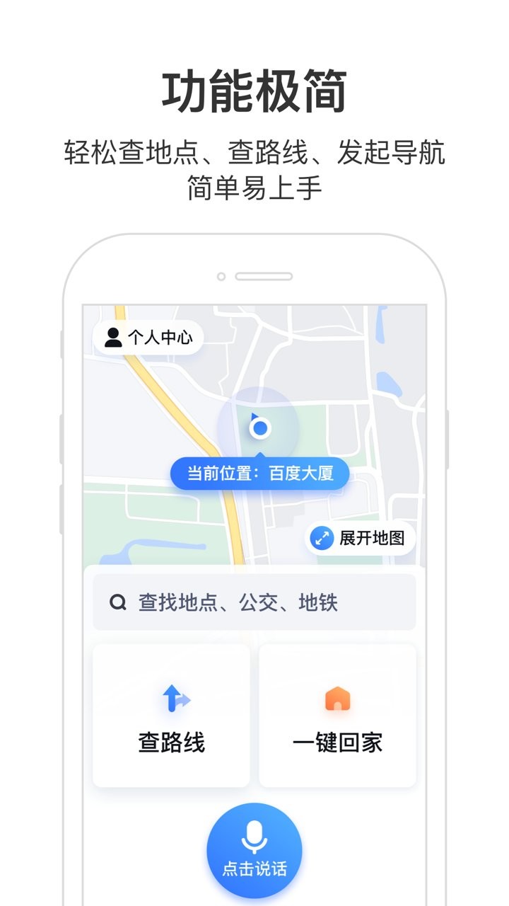 【功能极简】轻松查地点、查路线、发起导航,简单易上手。