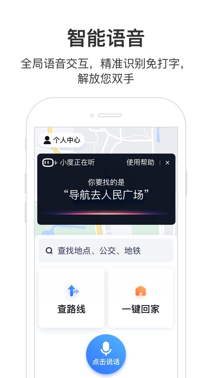 1、语音导航:全程语音导航,支持把app切到后台只听语音;