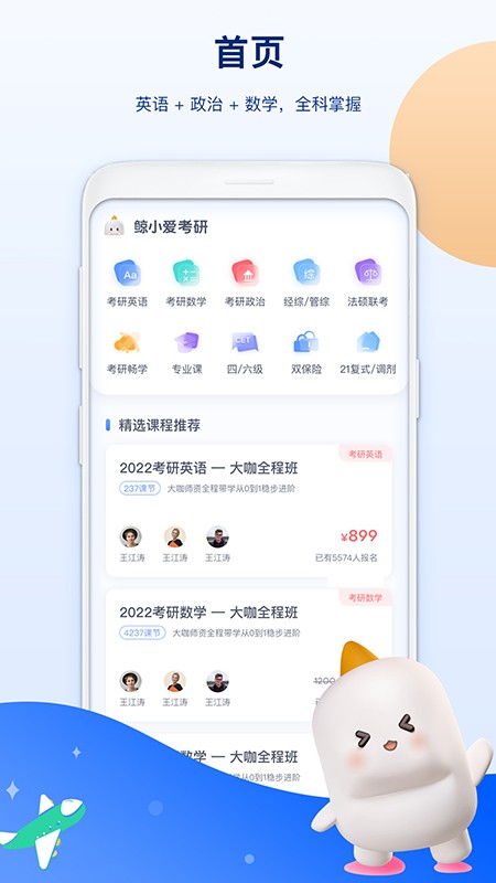 鲸小爱考研学习是专为考研学子打造学习平台,汇聚多种学科的优质教学课程,让用户随时可以复习学习,还提供了题库练习,高效便捷刷题学习,轻松备战考试。