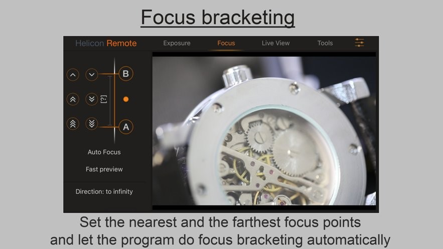 设置相机,将其连接到计算机或电话,调整相机设置并让它进行一系列拍摄,焦点从一个镜头移动到另一个镜头,以便堆叠成一个完全聚焦的图像。