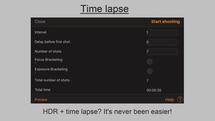 拍摄具有不同曝光的一系列照片,以进一步合并为高动态范围(HDR)图像。