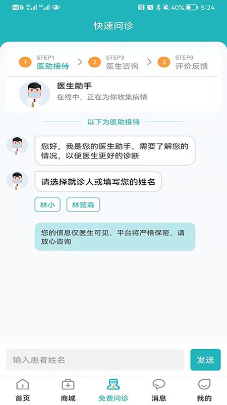 【快速问诊】:线上问诊3分钟就能完成一次问诊、开方、购药的全流程服务。