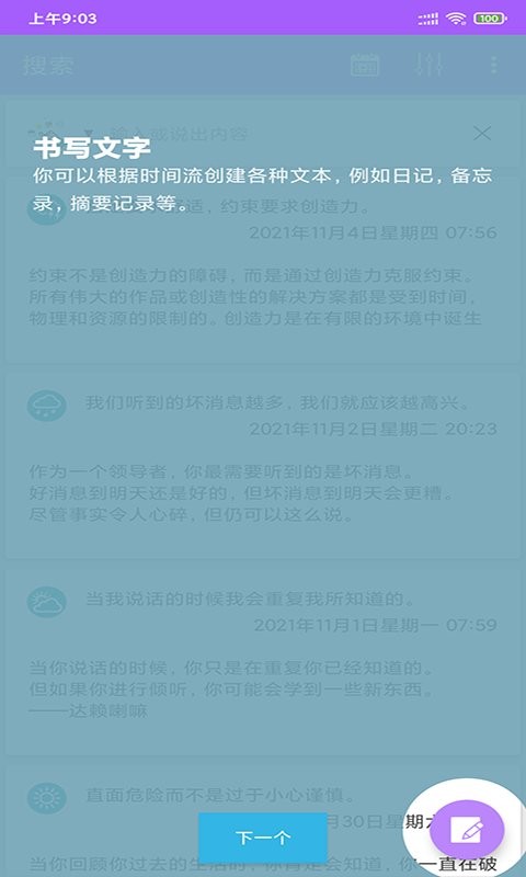 1、多标签分类:蜂鸟记事本支持多种标签分类功能,方便用户对不同类型的笔记进行整理和管理。无论是工作日程、个人计划、灵感闪现,都能轻松归档,方便查找。