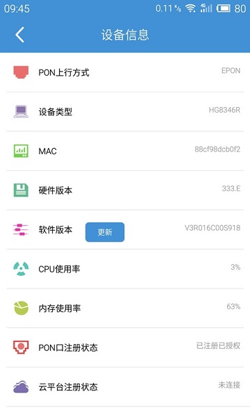 还可实时查询设备能力:序列号、收发光功率、注册状态、业务状态、连接状态等信息