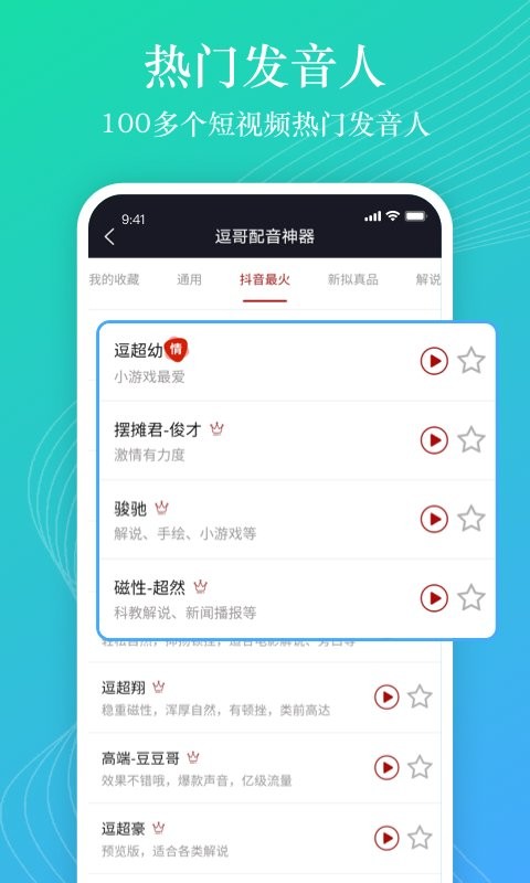 提供抖音视频中热门配音员的示例,可更直观感受音色的优质。