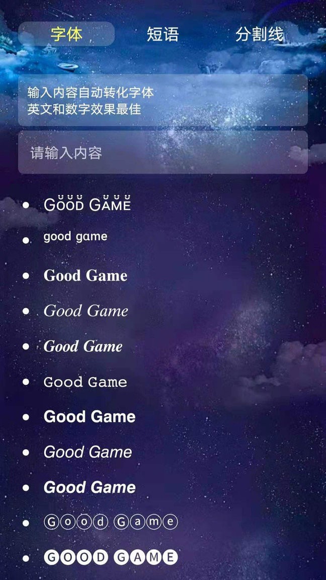 完全免费游戏改名和文字符号工具;万格改名集成了各式字体、颜文字符号的应用,可以选择任意好看的字体符号生成网名、句子等方式,在游戏或社交平台上使用。
