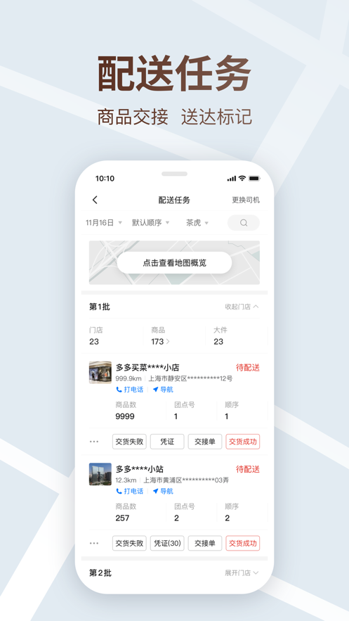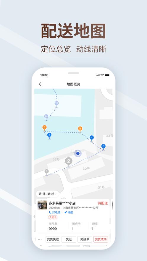 多多买菜司机端是专为司机运输开发的手机送货服务软件,帮助司机快速进行调度,定位目的地进行导航,确定到达时间,便捷进行管理,十四调整,方便出货。