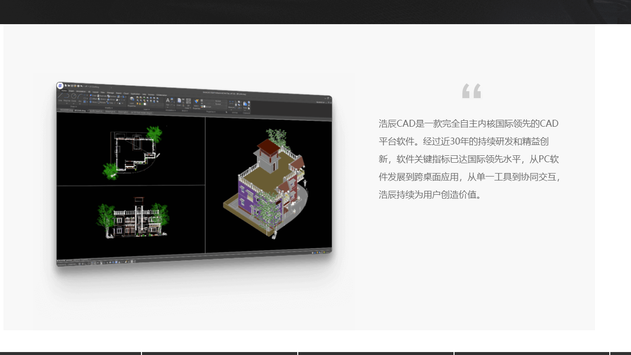 浩辰CAD是一款完全自主内核国际领先的CAD平台软件,深度兼容CAD文件格式。经过近30年的持续研发和精益创新,软件关键指标已达国际领先水平,从PC软件发展到跨桌面应用,从单一工具到协同交互,浩辰持续为用户创造价值。