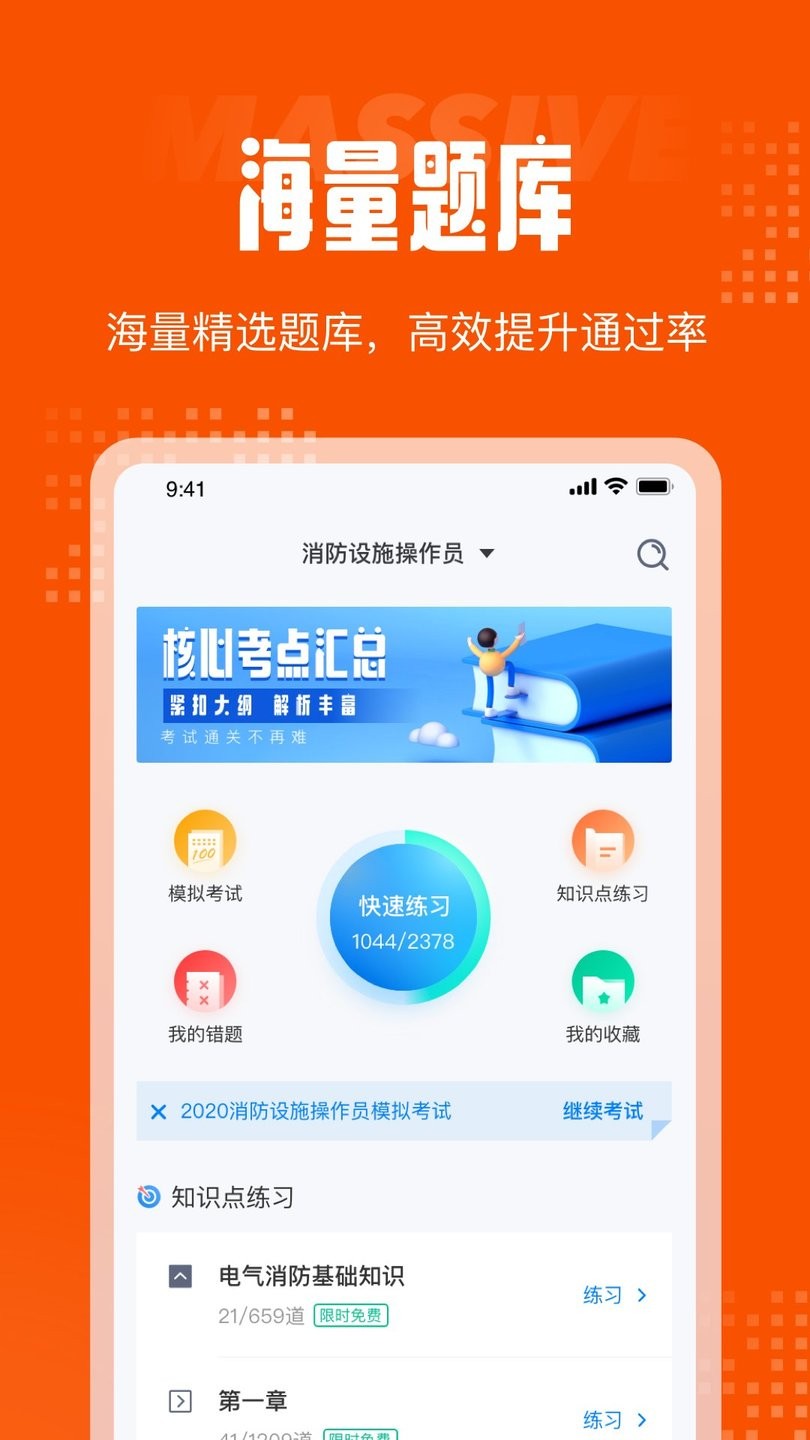消防设施操作员考试聚题库app为消防设施原打造的线上移动学习题库。软件中为用户全面整合了数年来考试模拟真题以及专业消防知识,为您带来海量优质专业的消防考级知识。能够帮助用户进行日常学习的锻炼以及备考冲刺!