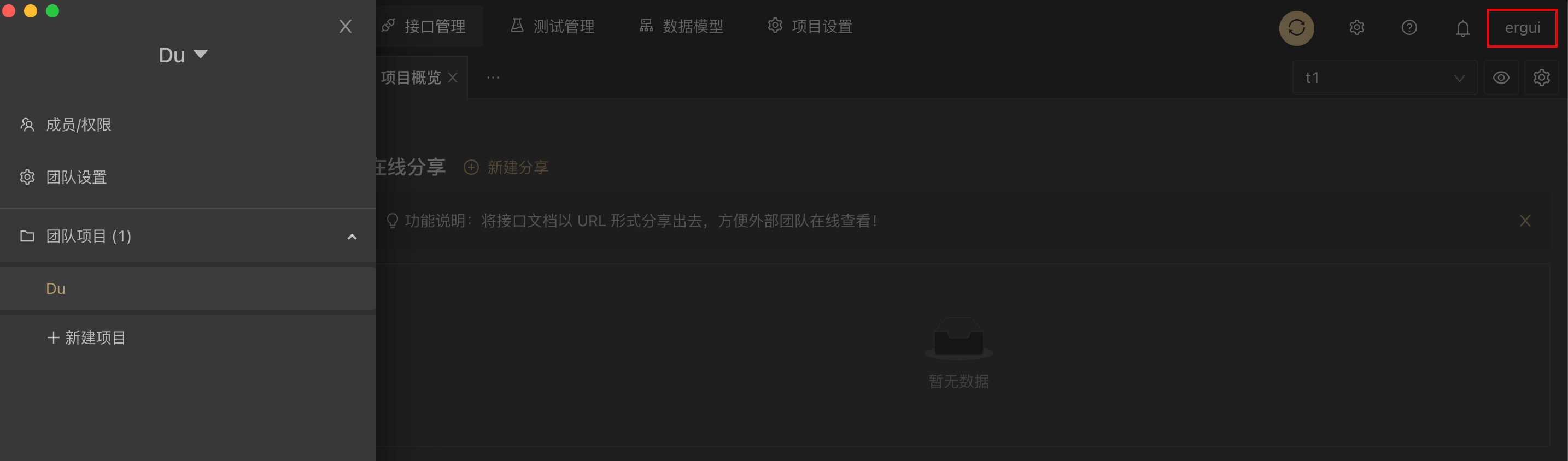 安装后,登录自己的账号,由团队成员邀请加入,通过后,即可共享团队所有项目的接口数据