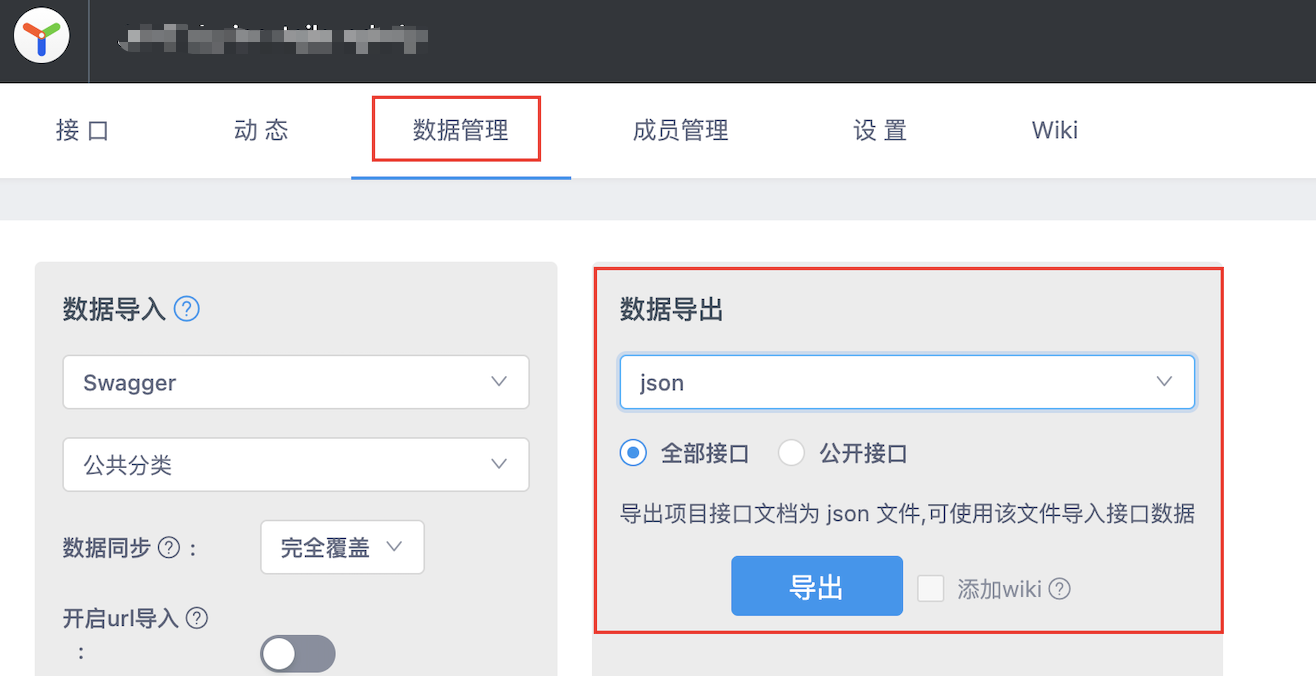 从yapi平台,选择服务-数据管理,导出json格式的文件