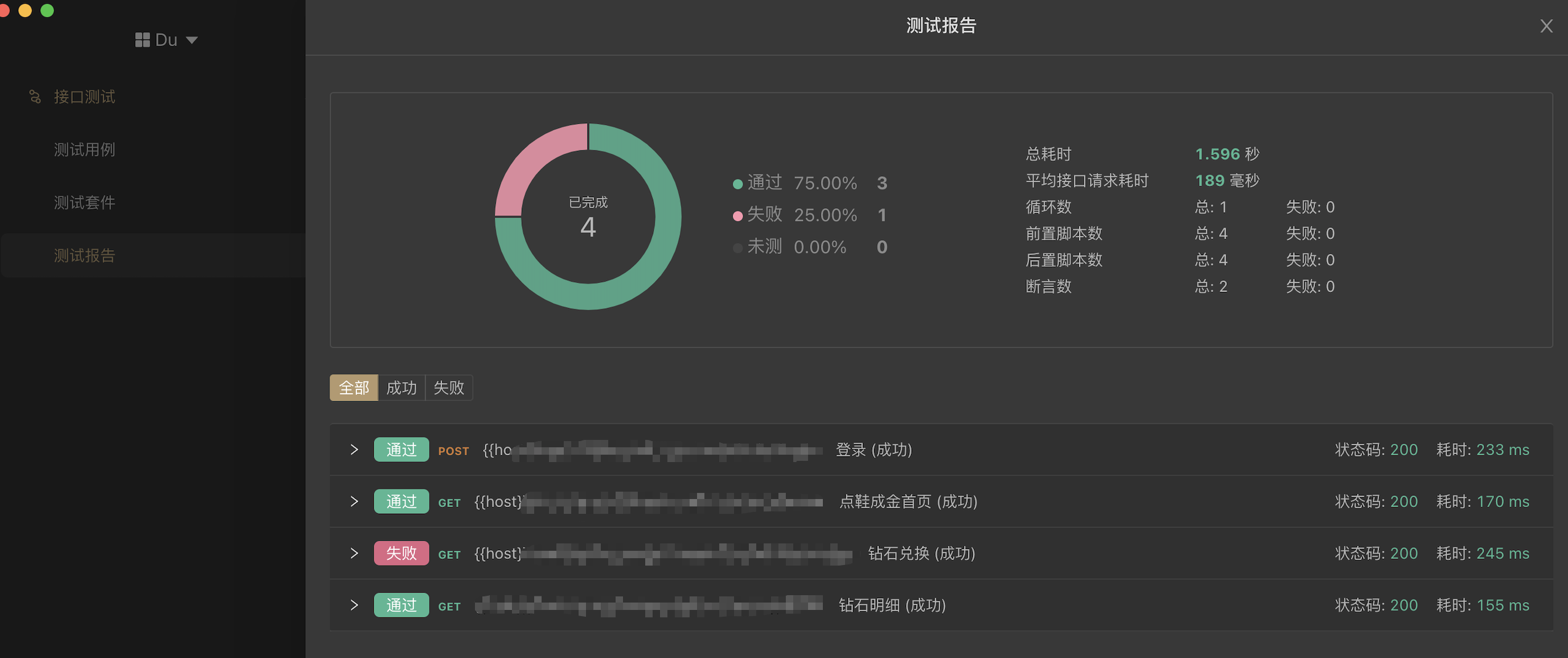 可以查看历史的执行记录,目前测试报告数据仅存放在本地电脑