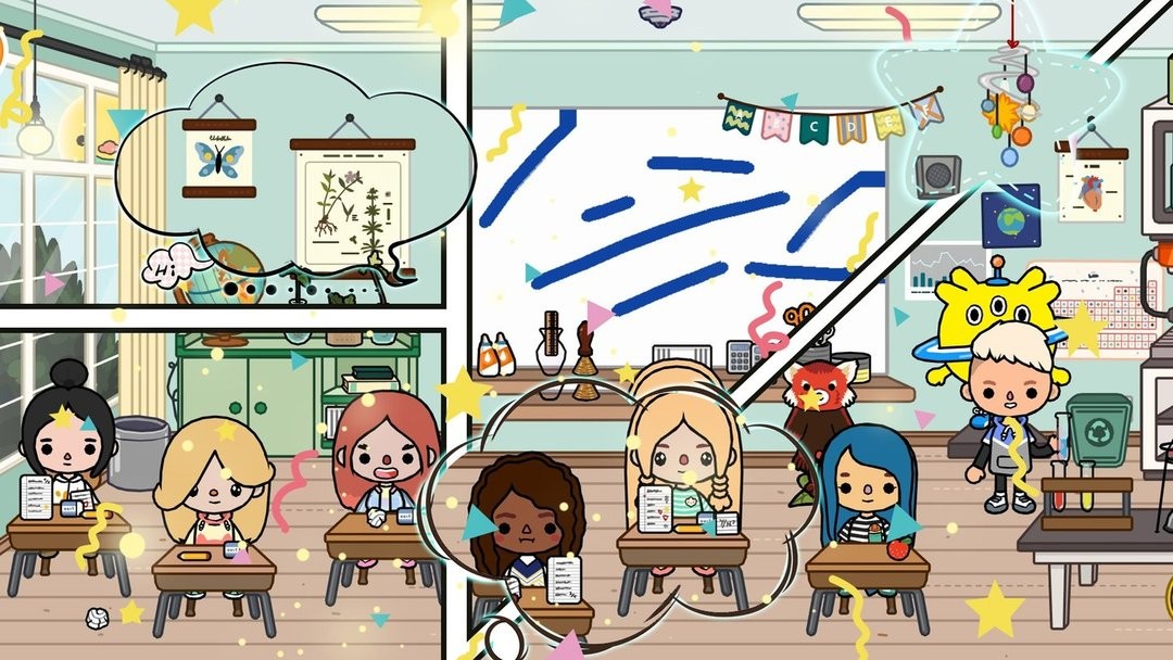 欢迎来到托卡世界模拟玩耍故事,托卡世界学校设有五大独特区域,用于讲述校园生活故事。前往操场,执教一支篮球队,在教室里进行一场科学实验,在青年俱乐部与你的乐队嗨一场!所有人物角色及其所持任何事物,皆可轻松在各大区域之间来回移动。