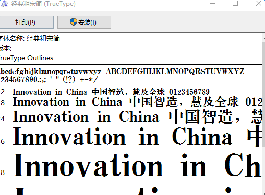 经典粗宋简字体是经典字库中一款很实用的电脑简体字体,该字体写出来的字秀气、美观,有着自己独特的魅力,不会太呆板,可以用于很多地方,喜欢这款字体的朋友可以来下载试用。