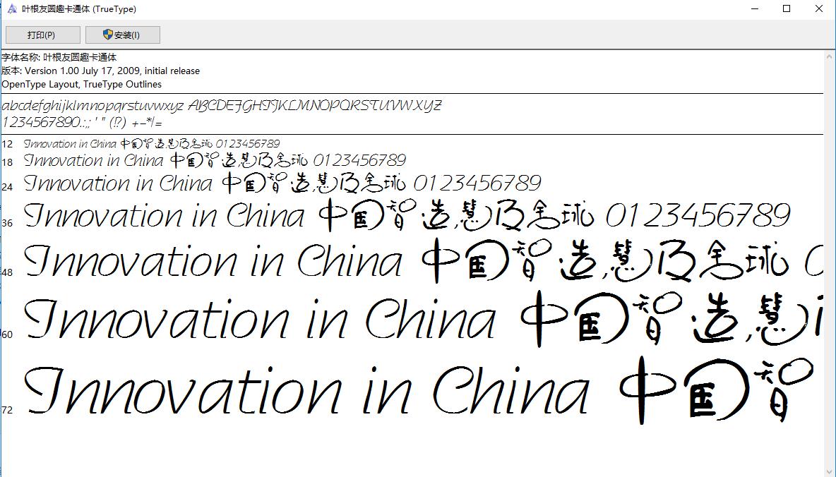 叶根友圆趣卡通体是书法家叶根友先生亲自设计书写的原创手写字体,类似于卡通体的风格,整个字形生动活泼,跳跃自然,大胆创新笔画结构是该字库的主要特点,适合用于广告语,儿童海报设计以及其他比较追求时尚、生动主题的平面或动态媒体中。