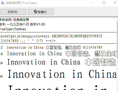经典细空黑体是一款非常经典的电脑字体,该字体写出来的字很工整规范,而且还是空心的,使用范围广,不管是书本印刷还是广告设计等都是很不错的,欢迎大家来下载试用。