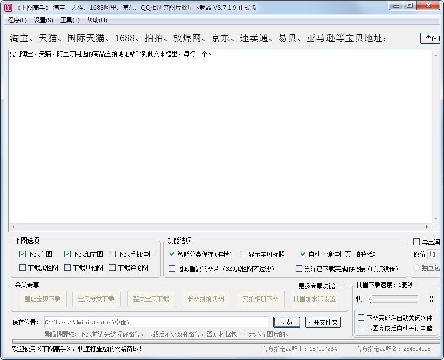 3、支持淘宝、天猫、阿里巴巴、拍拍等网店的宝贝图片批量分类下载。