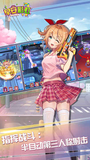 早安彩虹游戏是一款非常萌的二次元动作射击游戏,全新的萌系少女战士等你来挑选,游戏以青春校园为游戏背景风格,打造一个全新的校园rpg玩法,独创2d换装玩法,超多精彩不断,喜欢就来体验一番吧!