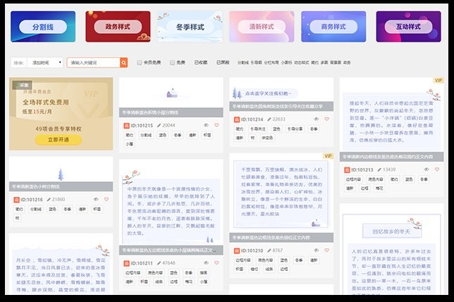 企业会员可建立2~50人的团队,团队中图片、文章、样式等素材可以进行共享。
