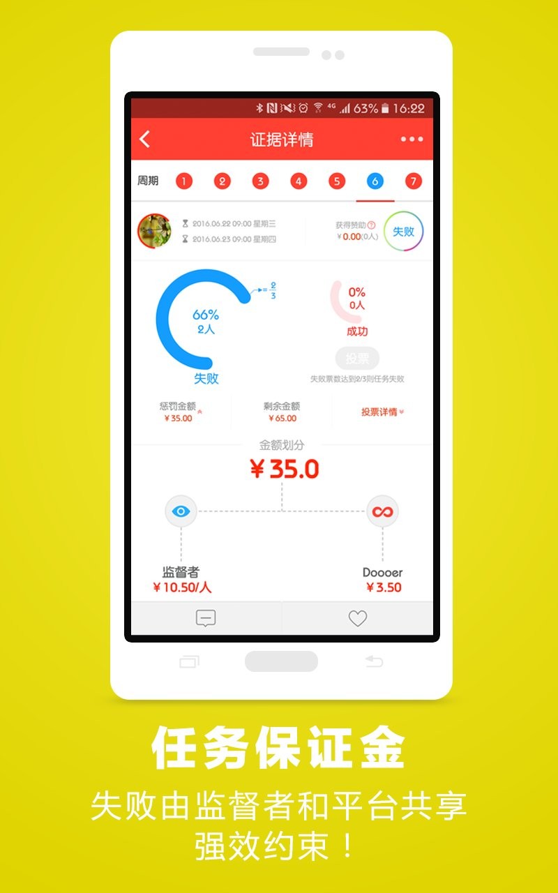 成功则保证金全额返回,失败则保证金将按规则划分给监督者和平台。
