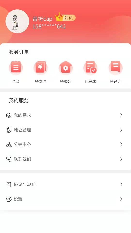 6、拥有多种个人中心管理功能列表,这里有我的需求、地址管理以及分销中心等管理功能;