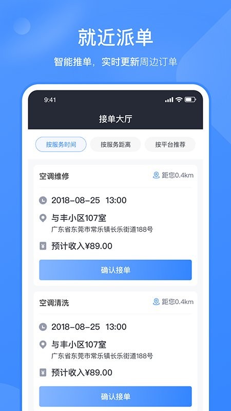 应用AI智能订单分析和派单算法,让您随时有单,顺路接单,时间自由可控,从容服务不焦虑。