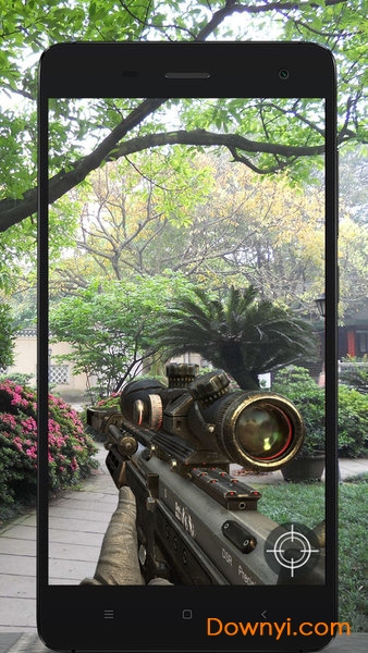 实景射击功能将使用您的摄像头预览,开启武器摄像头AR,借此您可以模拟射击真实的目标,并保存实景射击快照。