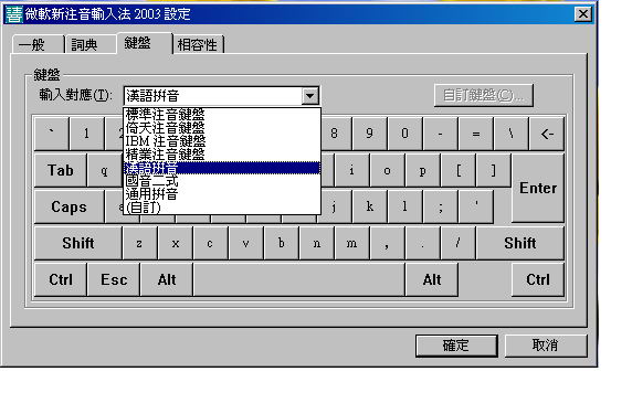 11.四种内建注音键盘设定: 标准、倚天、精业、 ibm。