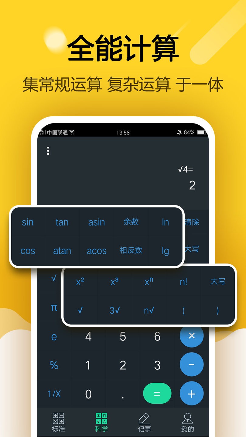 -支持公式运算、对数函数、幂函数、三角函数、反三角函数科学计算