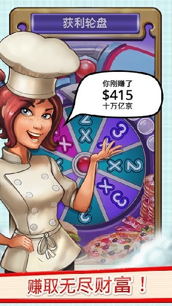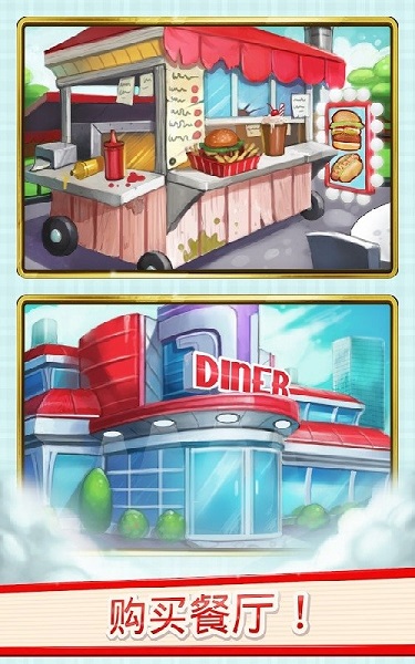 游戏中,你需要从自己的厨房开始,制售早餐、披萨及冰激凌圣代。点击可售卖食品并且赚钱。持续点击可售卖更多。当你赚到足够的钱,你就能买属于你自己的饭店!持续玩,不断地点击,就能建造你的盛宴王朝,坐拥许多贩食大卡车,甚至是5星级餐馆!