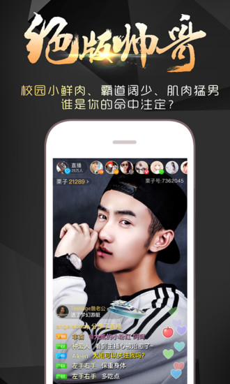 在这里,你可以和海量小鲜肉们随时随地互动、聊天!软件支持公开直播、私密直播功能,系统自带美颜效果,还可以在线关注喜欢的美女直播,和她面对面聊天互动,玩游戏等等!