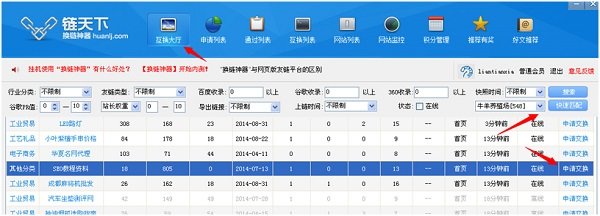 换链神器是首款站长友情链接交换的客户端,目前拥有近十万有效网站资源,日均在线友情链接交换网站近3万余家;是目前国内最活跃的友情链接平台。