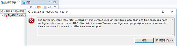 6、尝试打开,报错,提示是时区差异的错;