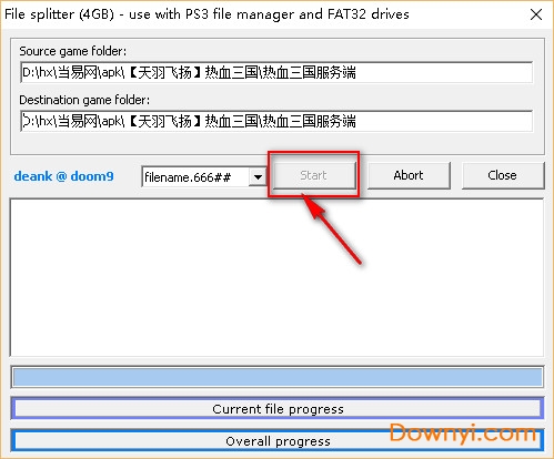 3、选择你要存放的目标位置(一般直接放到gamez文件夹),下面选择filename .666##,然后按start就开始复制兼分割游戏到移动盘的gamez文件夹